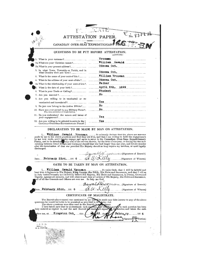 The attestation paper shows the personal information of William Vrooman, Chloe Cooley’s enslaver.