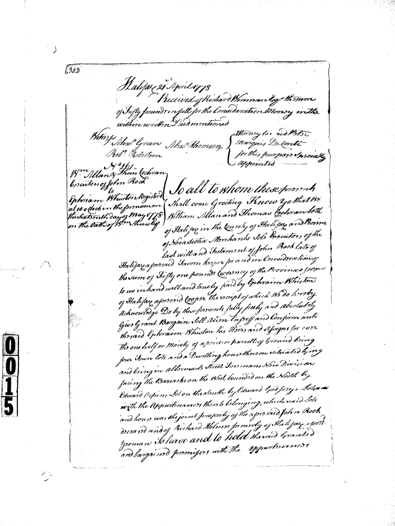 Figure 3: Halifax Deeds Book 15 page 302[71]_Page 1